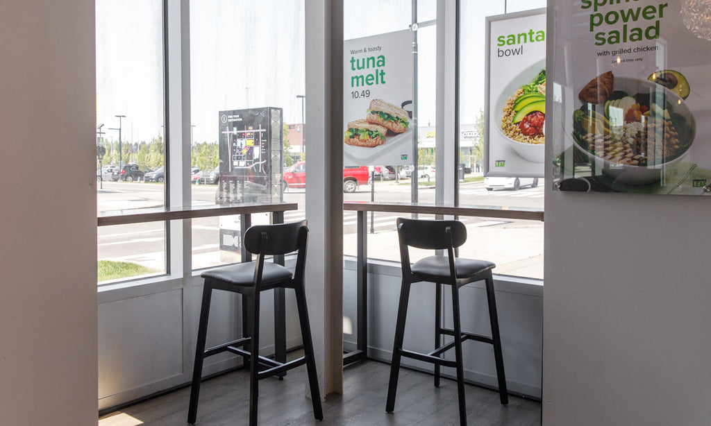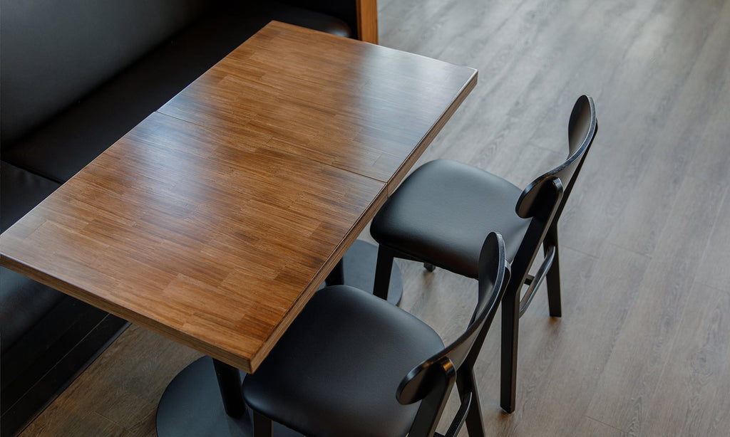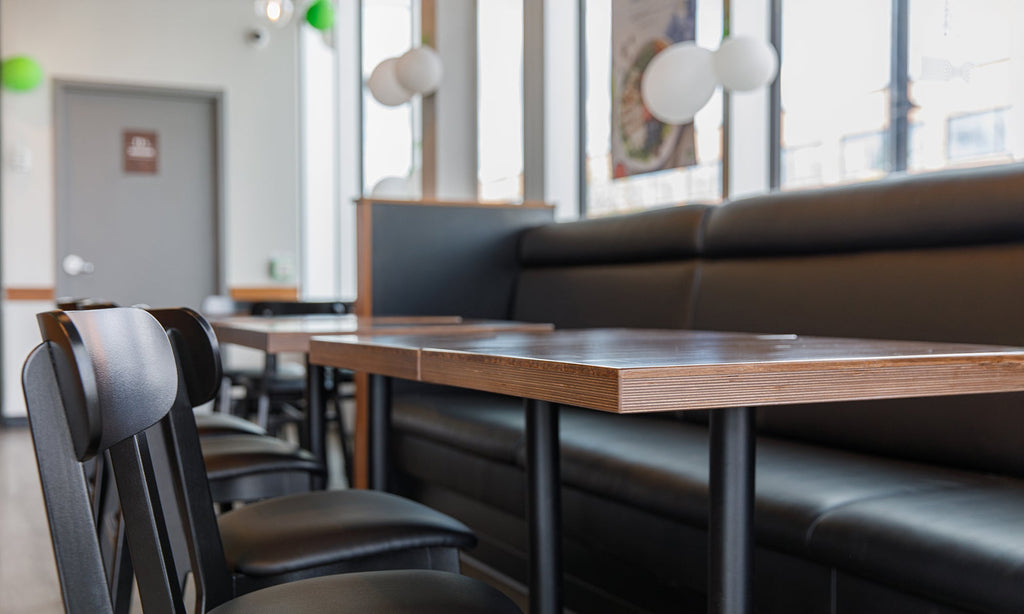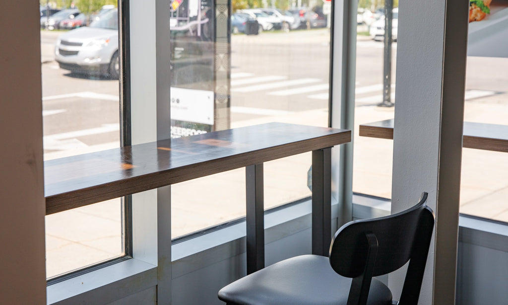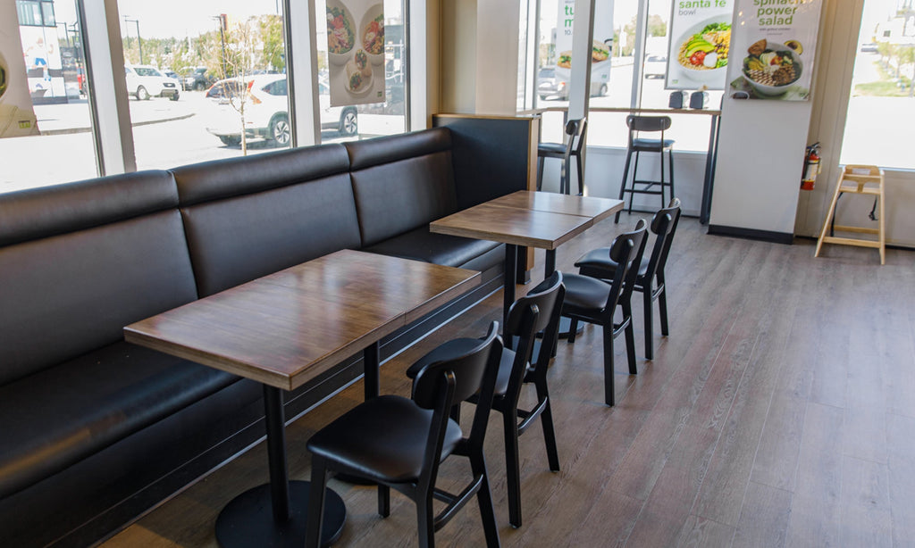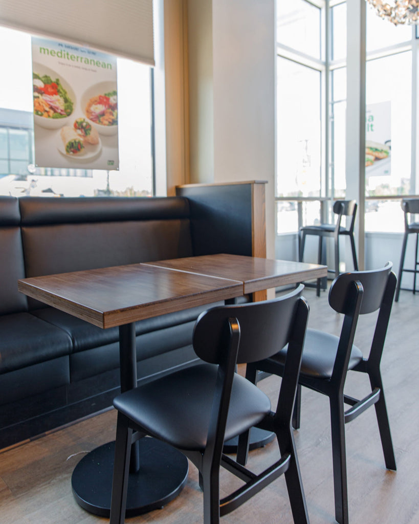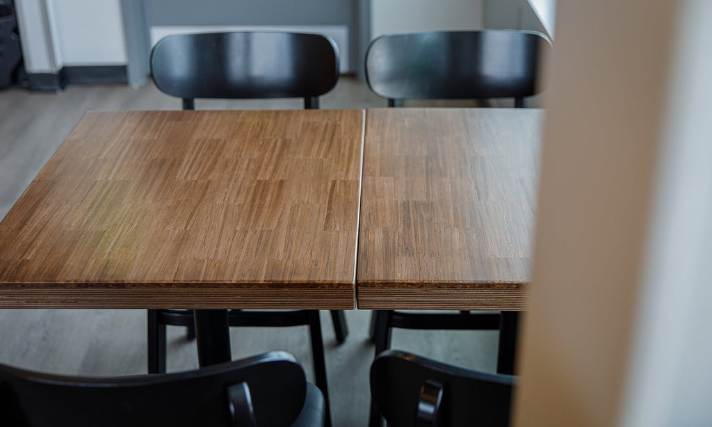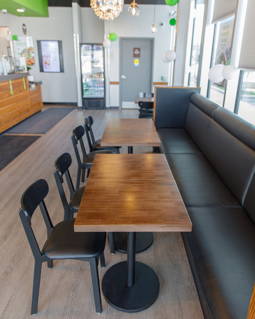 The Chopped Leaf is a leading quick service restaurant that offers delicious, wholesome meals, created to make you feel good after you eat. With over 100 operating and committed locations in Canada & USA, they are prioritizing sustainability and quality materials as they expand. Experience our premium wood alternative tabletops when you dine in at select locations, custom-colored to match Chopped Leaf's aesthetic.