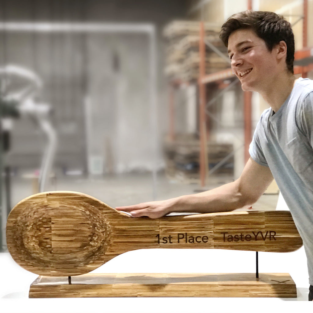 The award-winning YVR Airport is committed to leading the way for a greener future, with a mission to become net-zero by 2030. Through our collaboration, YVR has diverted more than one million chopsticks from the landfill, effectively saving 58,505 kg of CO2e. YVR takes it a step further by fully closing the loop, utilizing our circular solutions in seating tables for newly expanded zones, custom recognition awards, and podiums for speakers at special events.