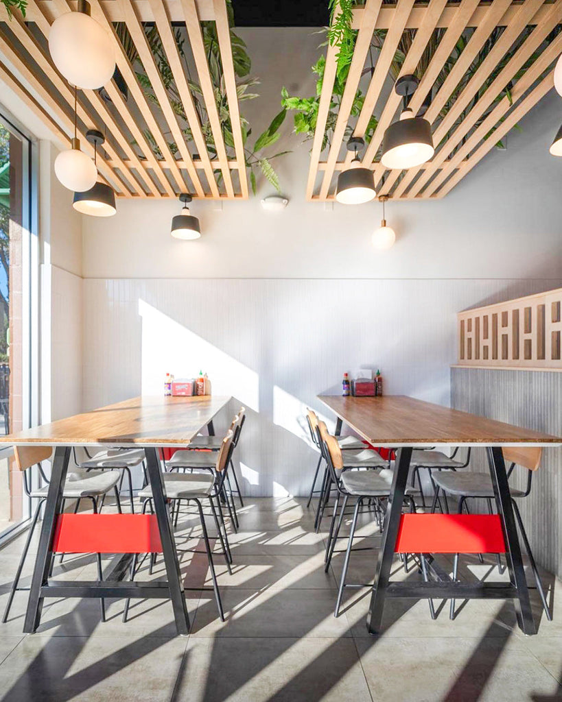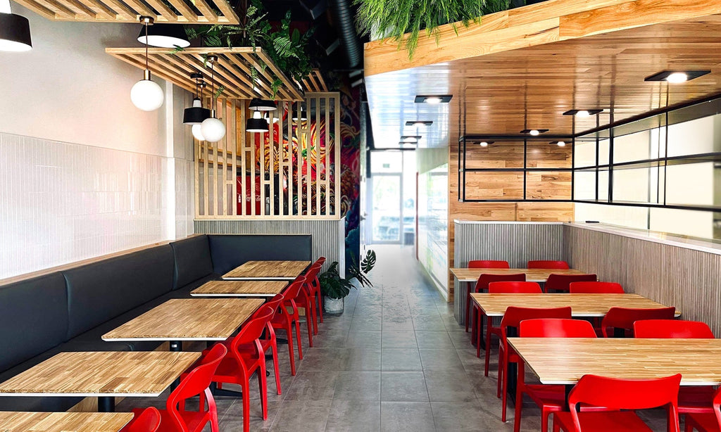 The owners of Viet-Nomz fast-service restaurants directly contacted the team to help deliver value-aligned furnishing for their third restaurant location. The challenge of the project was to design and manufacture Impact dining tables for the grand opening in coordination with the owners and contractors.