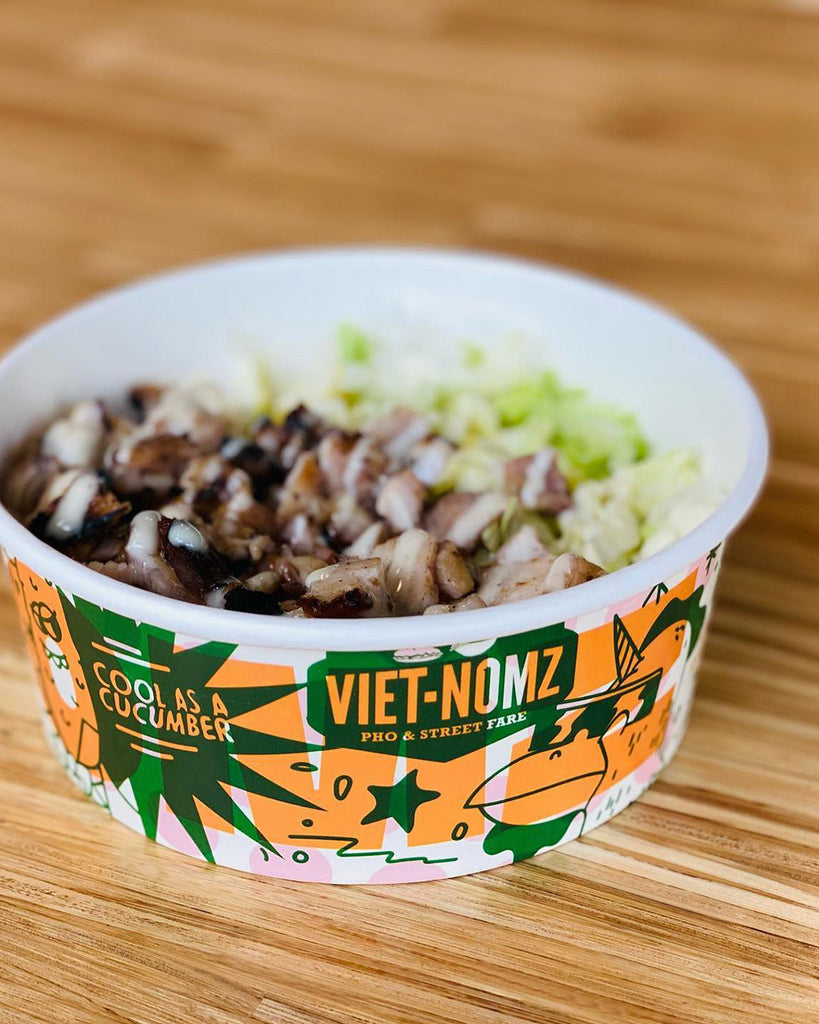 Viet-Nomz Pho & Street Fare is a modern fast casual dining destination showcasing the rich flavors and traditions of Vietnamese cuisine. With sustainability as a key focus, the restaurant sources local ingredients that enhance the freshness of each dish, complemented by the urban-chic décor blending traditional Vietnamese elements and contemporary design featuring ChopValue's table tops made from recycled chopsticks for the Lake Mary location, creating a vibrant and welcoming ambiance.