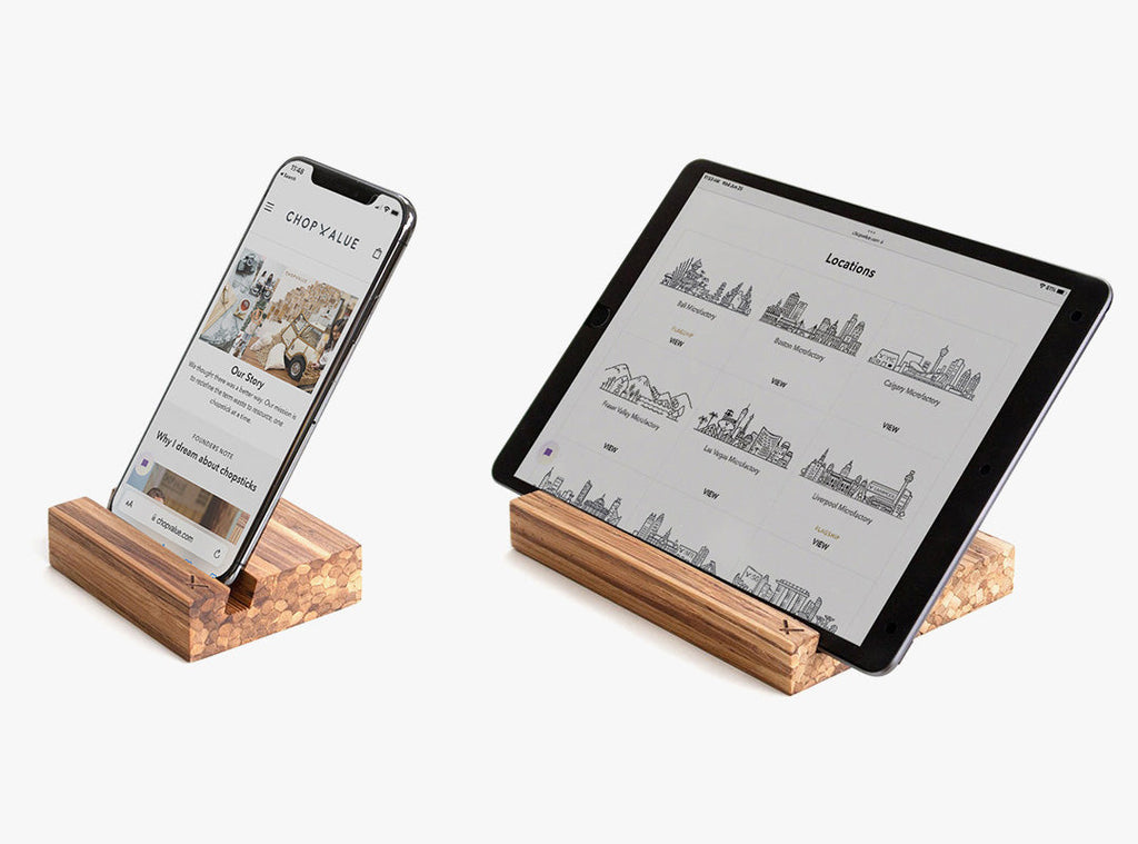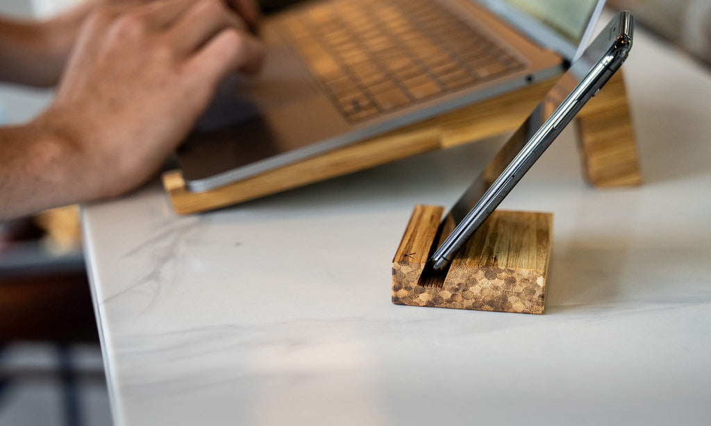Our angled Phone Stand and Tablet Stand frees your hands so you can comfortably surf the web during video calls or have the tablet stand as a second screen in the office.